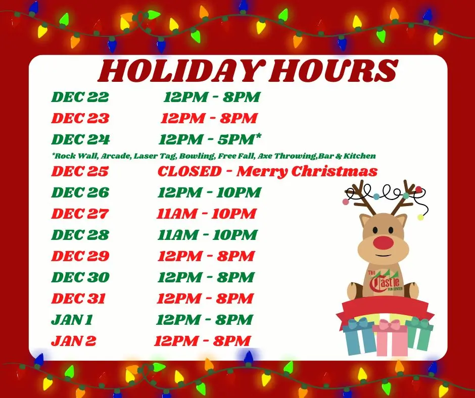 Come enjoy The Castle activities at any time during our regular hours of operation; No reservations needed or taken!